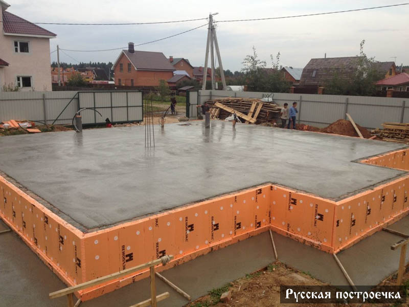 Установите на плиту первый ряд стен или опорных балок для перекрытий.